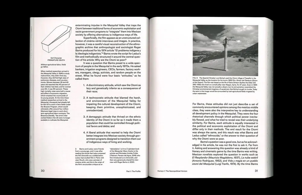 In cities, soil comprises a blurry category whose boundaries are both empirically uncertain and politically contested. By considering the specific material and political conditions of the world's largest wastewater agricultural system, Thinking Through Soil: Wastewater Agriculture in the Mezquital Valley offers a design methodology derived through a sustained engagement with Mexico's most controversial soil, and imagines what a better environmental future might look like in central Mexico. This case study demonstrates a way to "think through soil" in urban areas —to privilege soil as the basis for decision-making in city planning and design— and asserts an approach to soil knowledge with global utility, particularly for places where environmental problems are complex, long-term, and have no purely technical solution.
